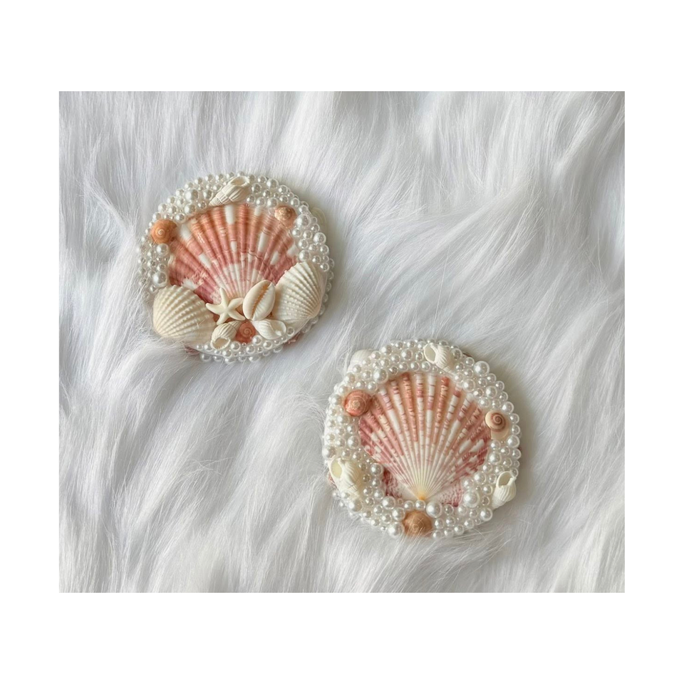 วัสดุ:เปลือกหอย, กระจกแก้ว, ริบบิ้น
