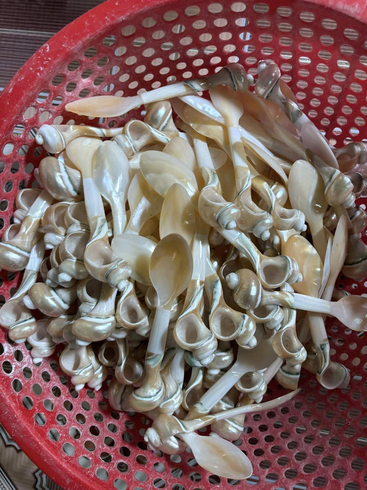 ช้อนเปลือกหอยประดับมุก ทำจากเปลือกหอยธรรมชาติ พื้นผิวเรียบเนียน เพื่อการตกแต่งบ้านและโต๊ะอาหารอย่างมีสไตล์