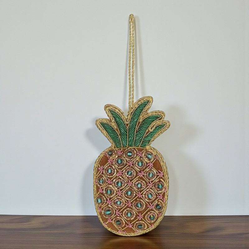 ของตกแต่งรูปสับปะรดแบบแขวน – งานฝีมือประดับลูกปัดและงานปักดิ้นโลหะสำหรับตกแต่งบ้าน
