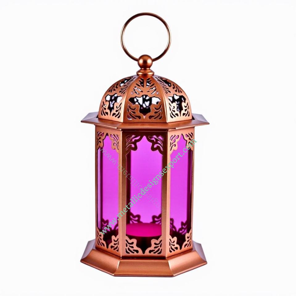 โคมไฟโลหะแฮนด์เมดตกแต่งสีชมพูพร้อมแผงกระจกและดาวตัดเหมาะสำหรับการตกแต่งบ้านและไฟบรรยากาศแบบเหล็ก