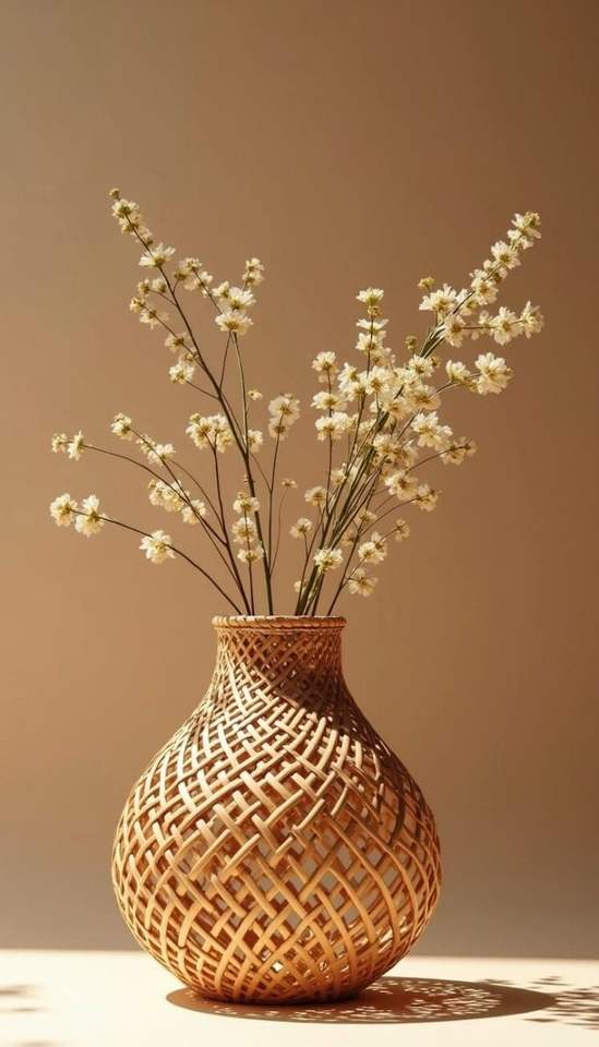 แจกันดอกไม้หวายตกแต่งด้วยโทนสีกลางเหมาะสำหรับการจับคู่กับดอกไม้ประดิษฐ์พืชแห้ง