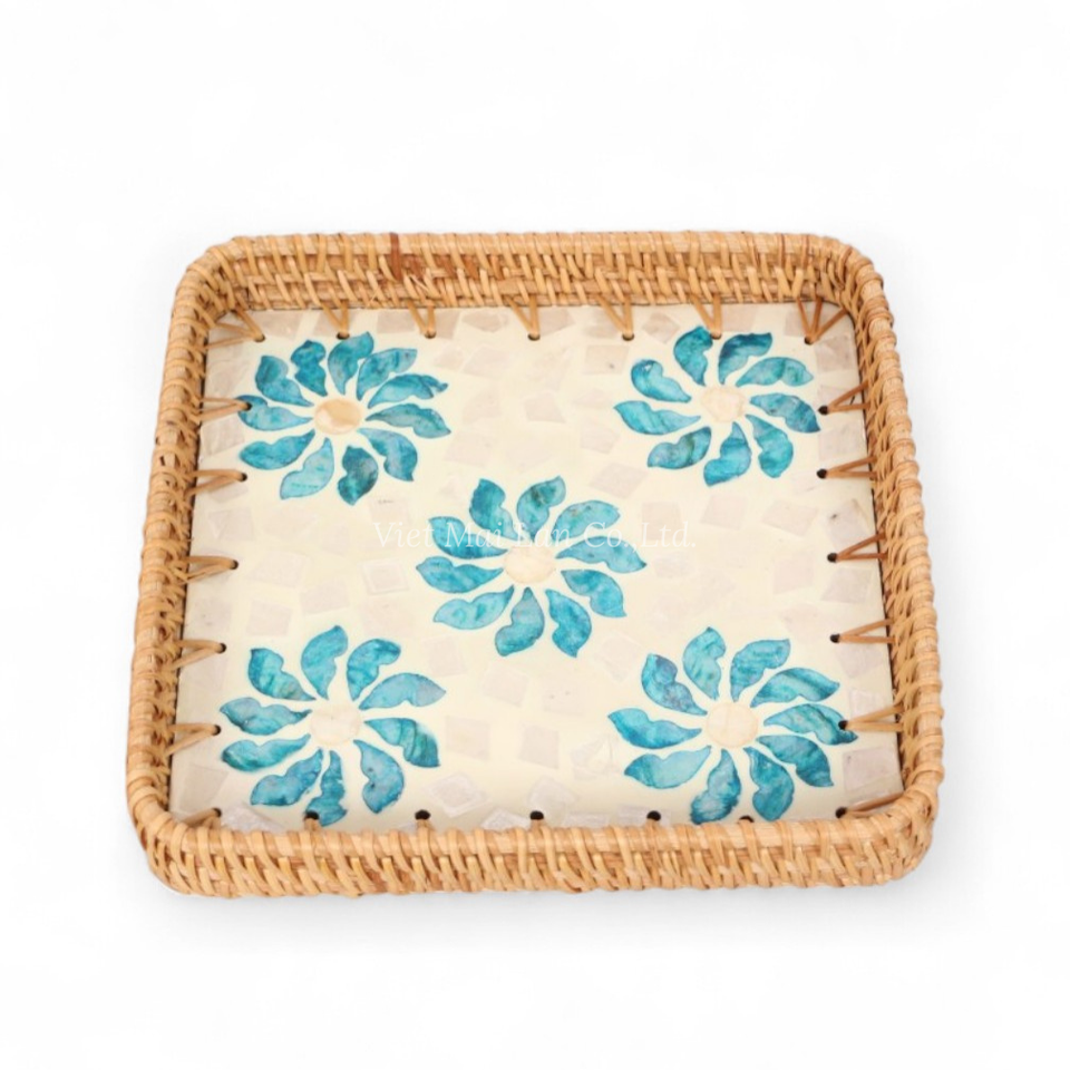 ถาดหวายตกแต่งสไตล์โบฮีเมียนประดับมุก สำหรับร้านอาหาร โรงแรม งานจัดเลี้ยง และรับประทานอาหารที่บ้าน