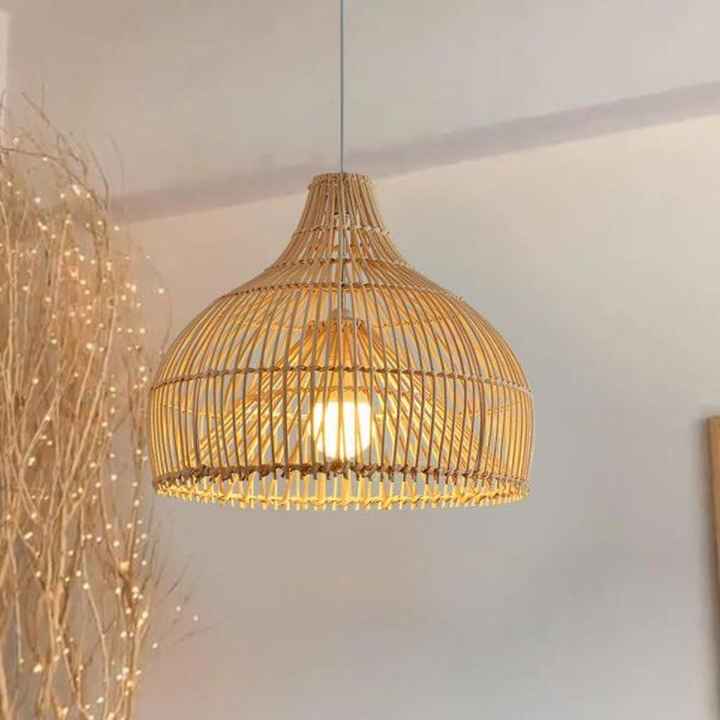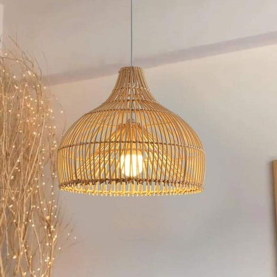 โคมไฟหวายตกแต่งลายสานเปิดโล่งเพื่อการกระจายแสงนุ่มนวลและเพิ่มความโดดเด่นให้กับพื้นผิวภายใน