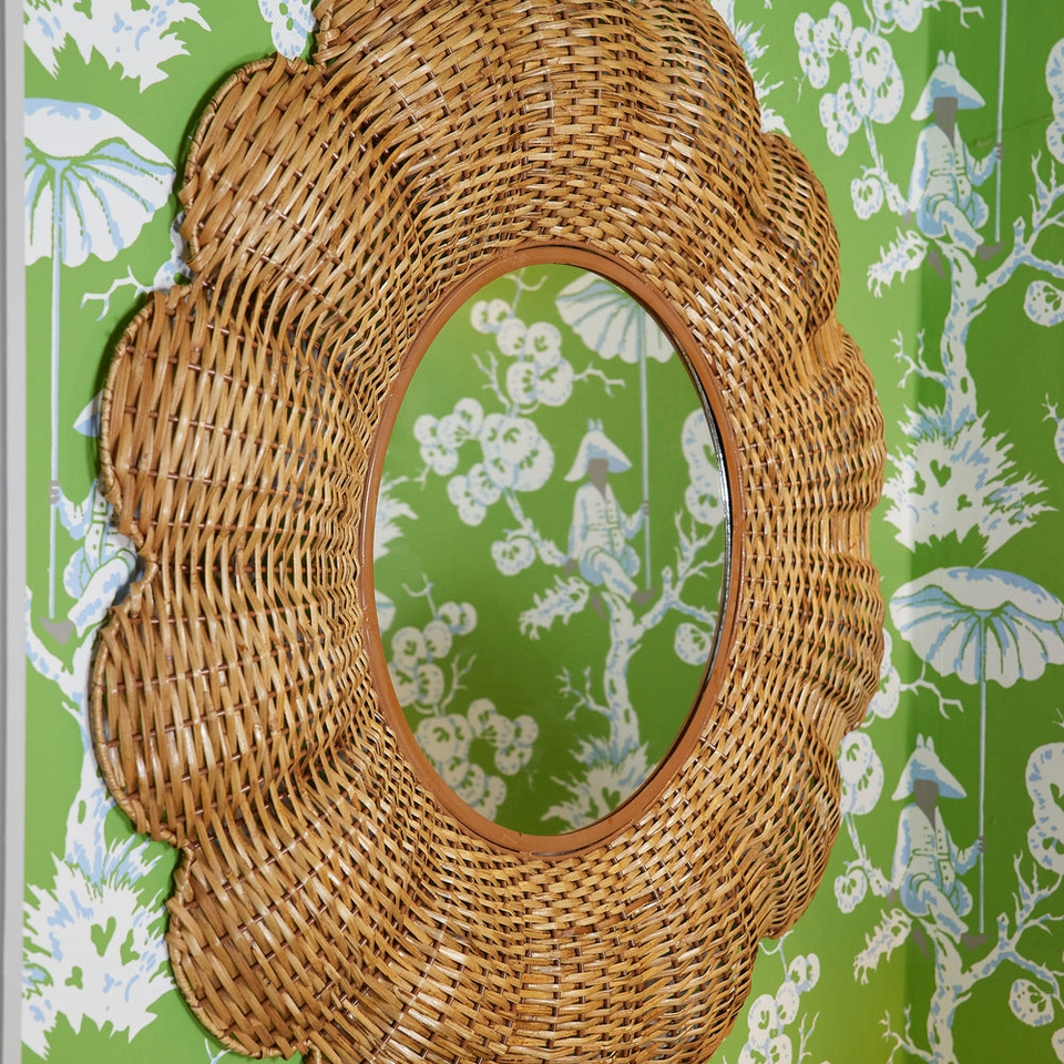 กระจกหวายตกแต่งผนังทรงกลมทำด้วยมือกระจกสานธรรมชาติสไตล์โบฮีเมียนตกแต่งบ้านกระจกแขวน