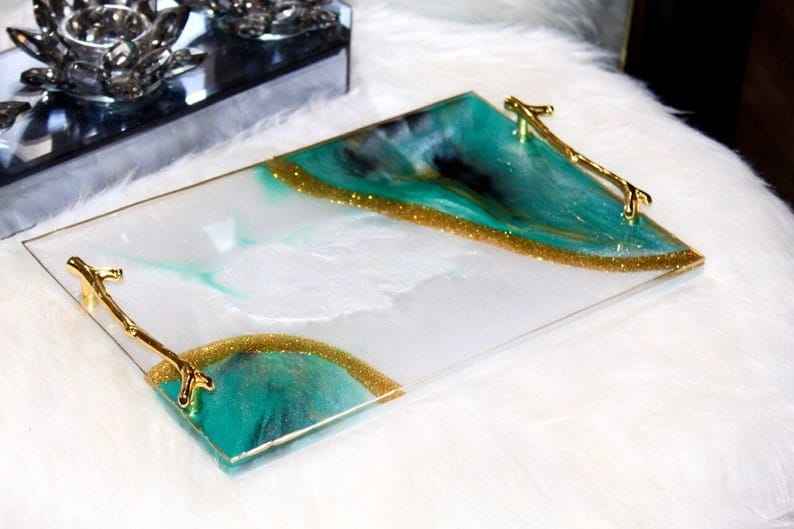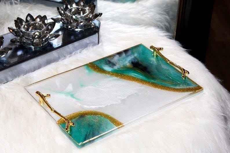 ถาดเรซิ่นตกแต่งด้วยดีไซน์ทันสมัยหรูหรา เนื้อสัมผัสเรียบเนียน ทนทานยาวนาน เหมาะสำหรับใช้ในบ้านและห้องครัว