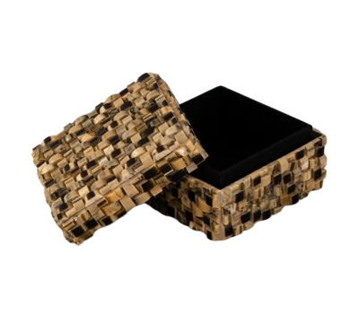 งานเรซินตกแต่งลายเพชรกล่องเครื่องประดับงานกระดูกสีดําและสีน้ําตาลขัดเงาโรงงานราคาโดยตรง