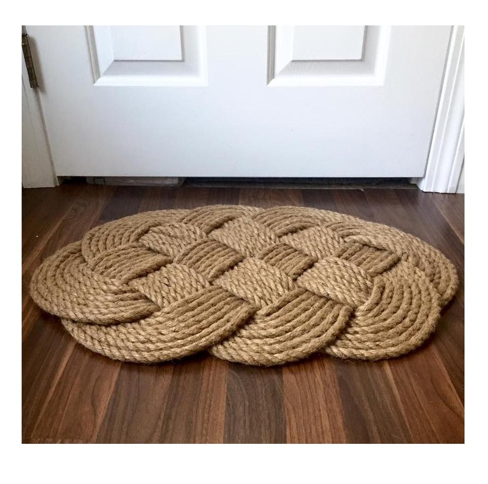 พรมเช็ดเท้าเชือกตกแต่งสำหรับประตูหน้าบ้าน ด้วยสีน้ำตาลและลักษณะงานฝีมือแบบออร์แกนิก
