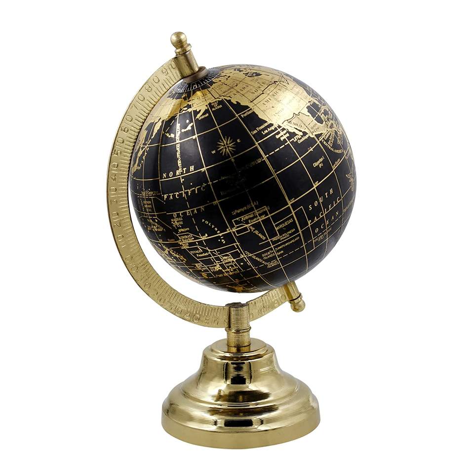 ตกแต่งแผนที่โลกแบบหมุนได้ฐานโลหะขนาด8นิ้วและขาตั้งเพื่อการศึกษาสำหรับโต๊ะทำงาน