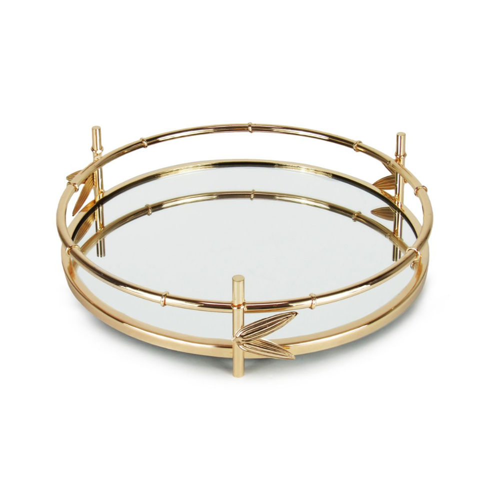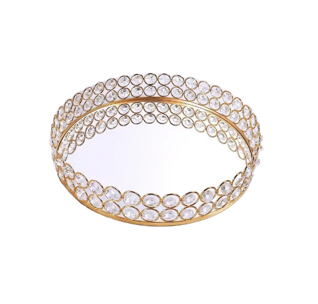ถาดโลหะทรงกลมตกแต่งกระจกเงาขอบโค้งสีโรสโกลด์ สำหรับจัดเก็บเครื่องสำอาง น้ำหอม เครื่องประดับ ถาดเสิร์ฟ ของตกแต่งบ้าน