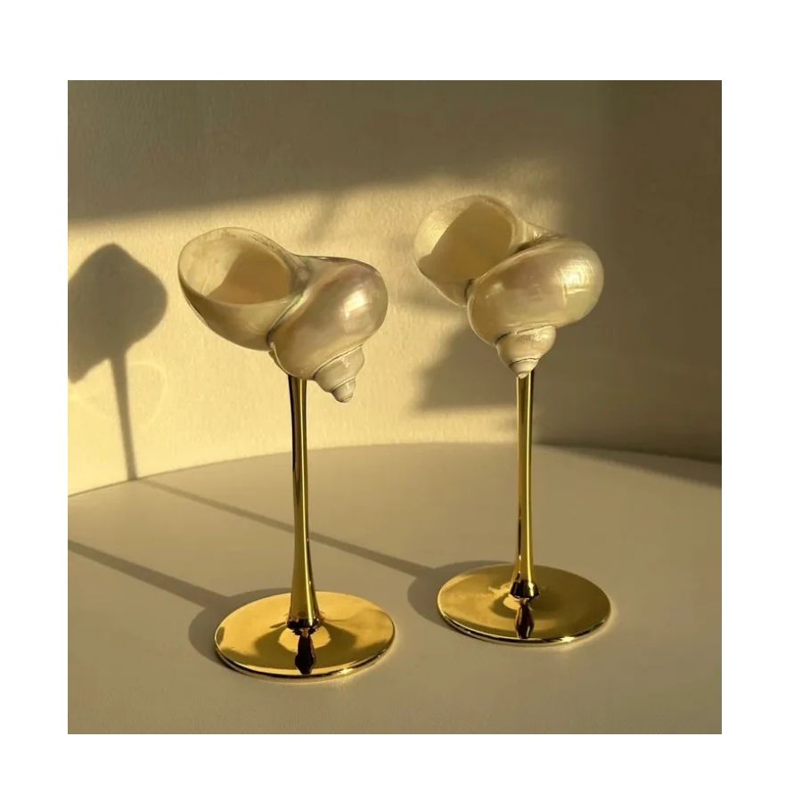 ชุดแก้วไวน์และเปลือกหอยทำจากแก้วสำหรับประสบการณ์การรับประทานอาหารริมชายหาดที่โรแมนติก