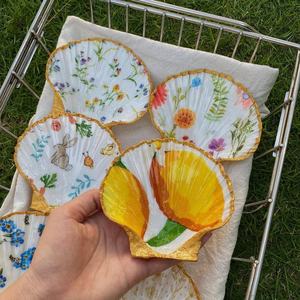 ถาดใส่เครื่องประดับเปลือกหอยตกแต่ง จานเปลือกหอยเชลล์ธรรมชาติ งานฝีมือเปลือกหอย ของตกแต่งสไตล์ชายฝั่ง