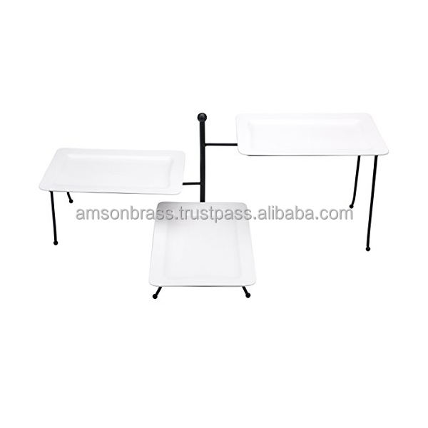 ถาดเสิร์ฟเค้กโลหะ3ชั้นอุปกรณ์บริการตกแต่งถาดเสิร์ฟของหวานโลหะสีทอง3ชั้น
