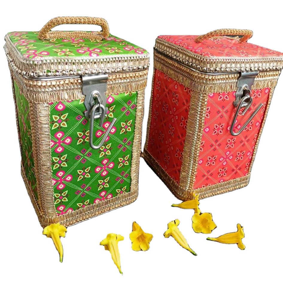 กล่องสแตนเลสตกแต่งอย่างดี ปิดสนิท เป็นมิตรกับสิ่งแวดล้อม สำหรับใส่ขนมงานแต่งงานและของชำร่วย ของขวัญงานอีด/รอมฎอนสำหรับแขก