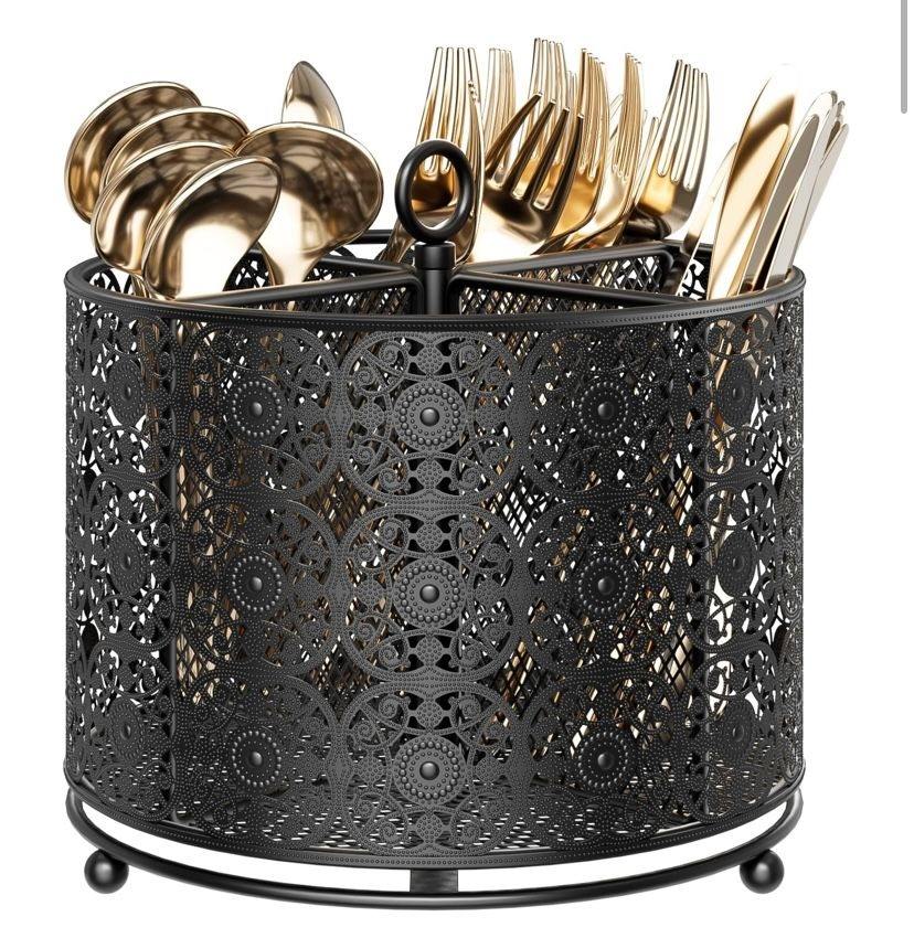 ที่ใส่ช้อนส้อมเหล็กตกแต่งสไตล์สวยงามสำหรับจัดระเบียบห้องครัวและห้องรับประทานอาหาร เพิ่มความสวยงามให้กับการตกแต่งภายในด้วยดีเทลโลหะ