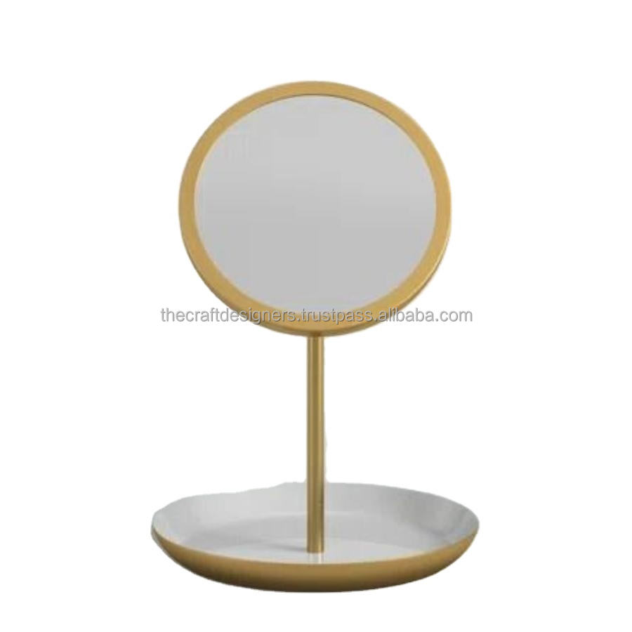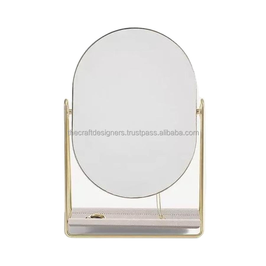 กระจกตกแต่งโต๊ะกระจกตกแต่งภายในใช้งานง่ายพกพาได้กระจกแต่งหน้าสำหรับผู้หญิงพร้อมถาดเครื่องแต่งหน้าสไตล์โต๊ะเครื่องแป้ง