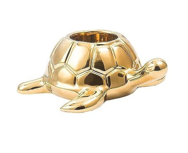 เชิงเทียนตกแต่งสไตล์เต่าแบบตั้งโต๊ะทำจากโลหะเคลือบเงาสีทองแฮนด์เมดเชิงเทียนแฟนซี