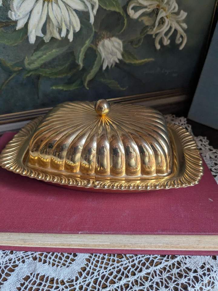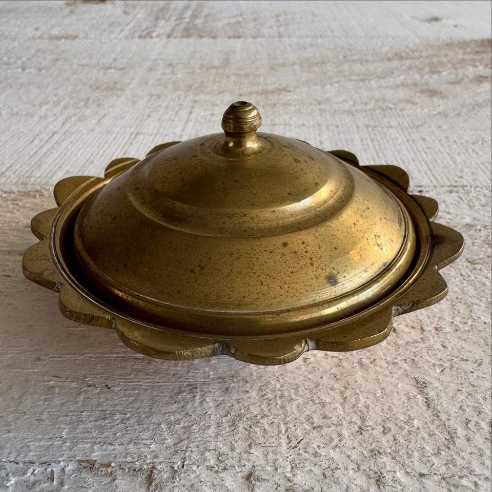 จานเนยทองเหลืองตกแต่งสไตล์วินเทจเนื้องานทำมือเหมาะสำหรับการจัดโต๊ะรอยัลและงานเฉลิมฉลองทางวัฒนธรรม
