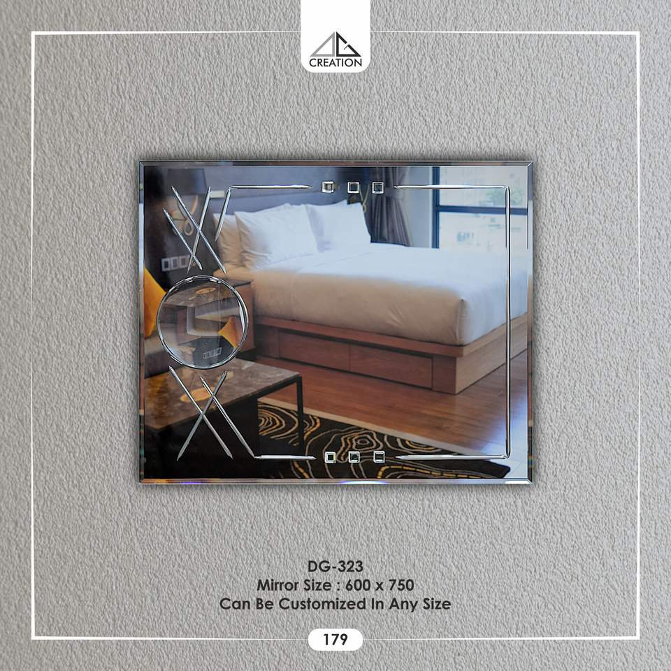 กระจกตกแต่งผนัง ขอบขัดเงา ลายเส้นสลัก กระจกขยาย ไม่มีกรอบ ติดผนัง น้ำหนักเบา