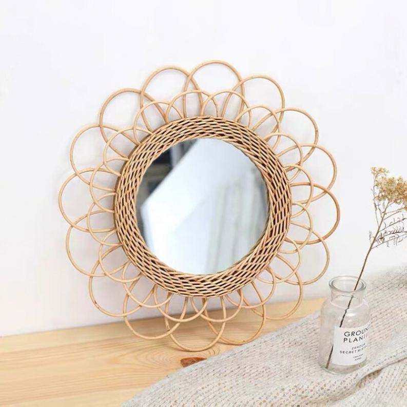กระจกติดผนังตกแต่งที่ไม่เหมือนใครสไตล์โบราณทำด้วยมือกระจกหวายหวายหวายสำหรับตกแต่งภายใน