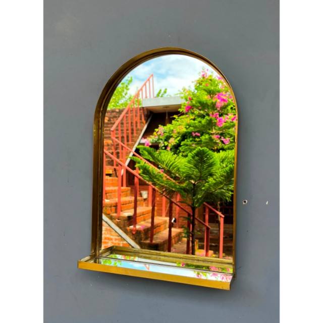 กระจกติดผนังสำหรับตกแต่งทำจากทองเหลืองและกระจก/แก้วใช้สำหรับตู้โชว์และจัดเก็บของตกแต่งบ้านจากอินเดีย