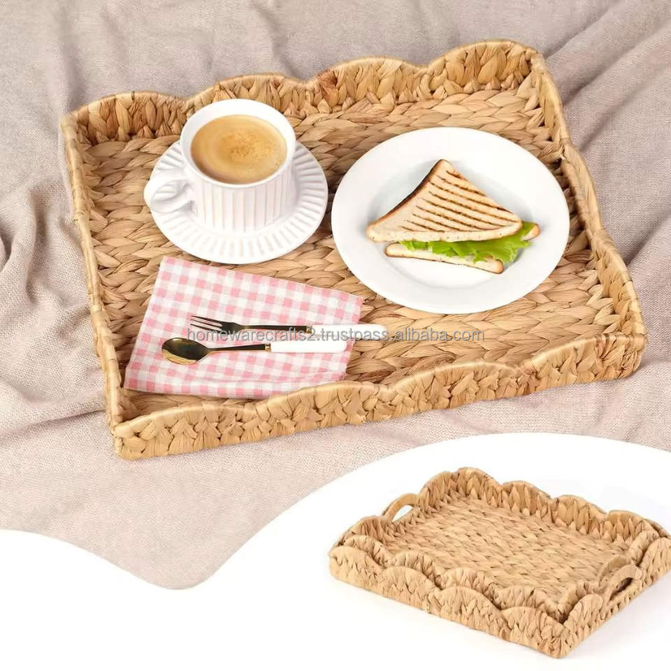 ถาดใส่ของตกแต่งทำจากผักตบชวา งานแฮนด์เมด พร้อมใช้เป็นของขวัญ ถาดเสิร์ฟแบบเป็นมิตรกับสิ่งแวดล้อม สำหรับจัดระเบียบในครัว