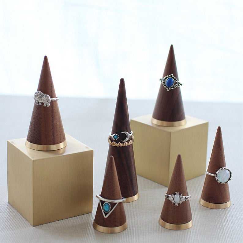 ไม้ตกแต่งด้วยทองฐานแหวนยืนกรวยรูปร่างเครื่องประดับออแกไนเซอร์