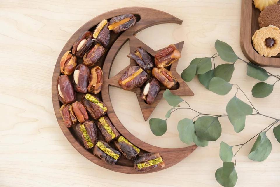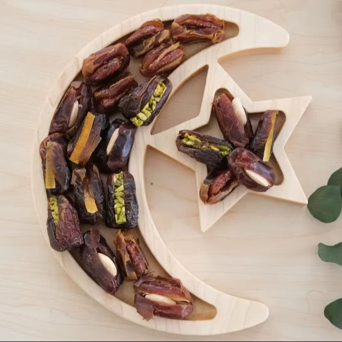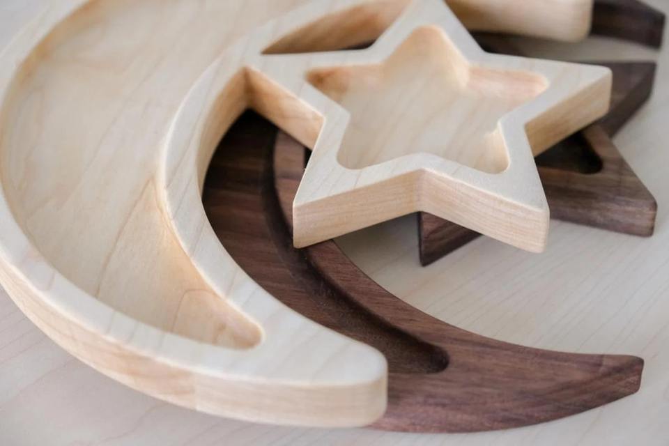 ถาดไม้รูปพระจันทร์เสี้ยวและดาว ตกแต่งสวยงาม เหมาะสำหรับรับรองแขกในช่วงรอมฎอน อีด และงานเฉลิมฉลองต่างๆ