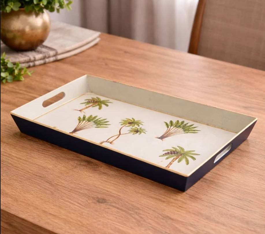 จานเสิร์ฟไม้เคลือบลายตกแต่ง - ดีไซน์รูปทรงสี่เหลี่ยมทันสมัย ใช้กับเครื่องล้างจานได้ มีสินค้าพร้อมส่ง