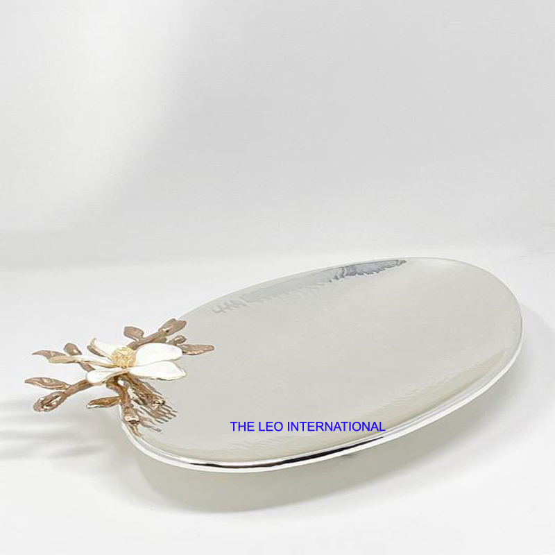 Decorative Wooden Serving Tray with Golden Flower Handles