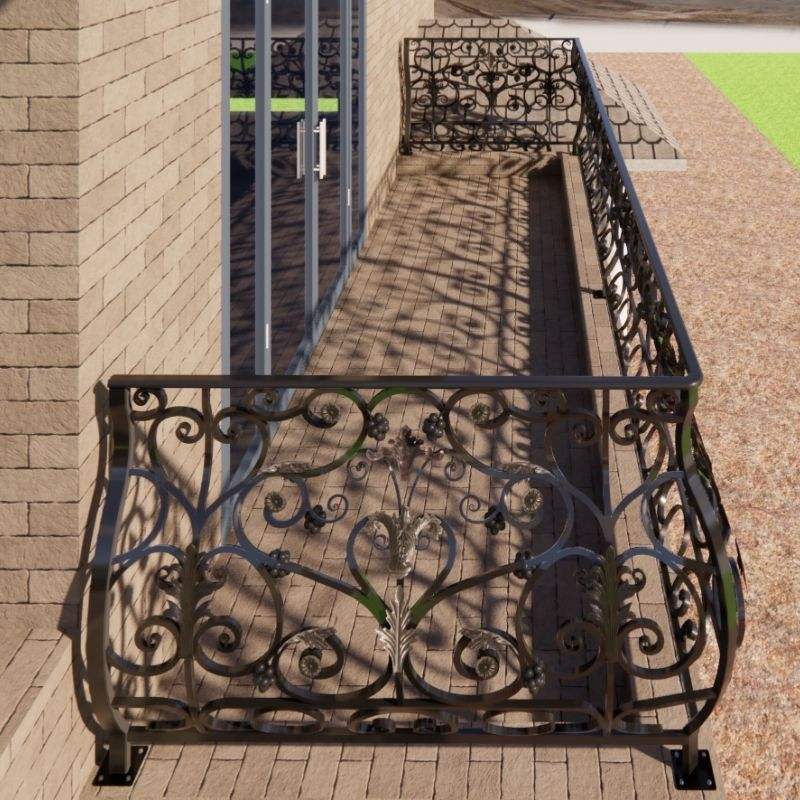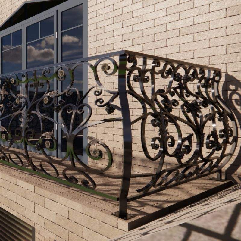ราวระเบียงเหล็กดัดและสแตนเลสตกแต่งสำหรับวิลล่า ดีไซน์ทันสมัย โครงสร้างโลหะแข็งแรง รายละเอียดงานศิลป์