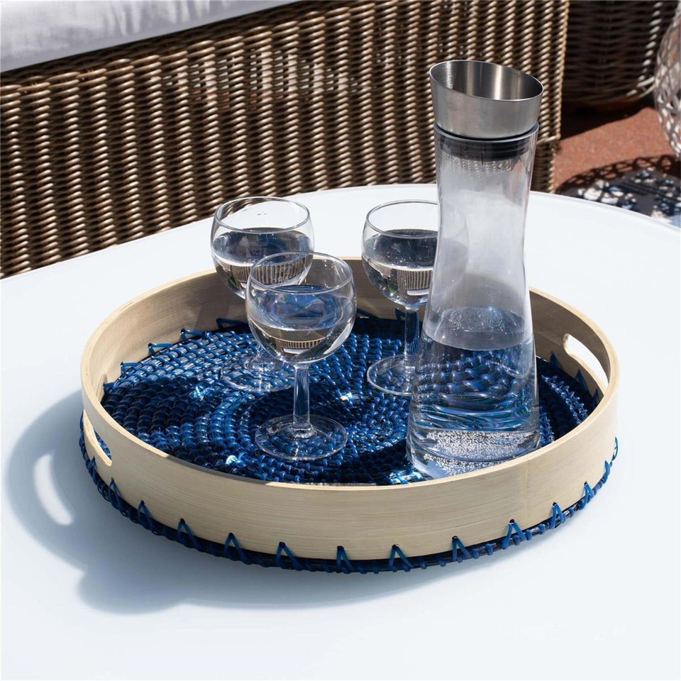 ถาดไม้ไผ่ตกแต่งรวมกับหญ้าทะเลทรงกลมวัสดุธรรมชาติที่ทนทานทำจากเวียดนามขายส่ง