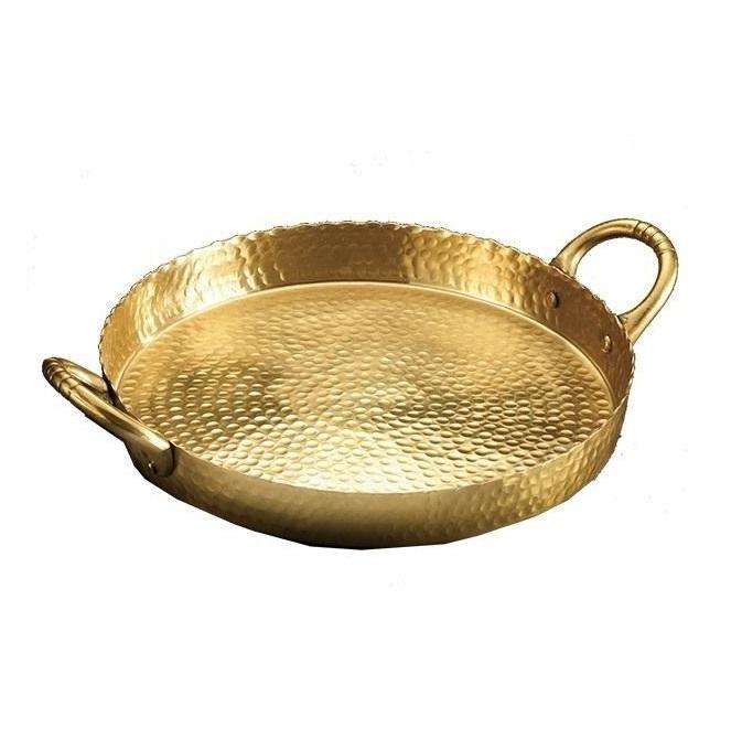 ถาดโลหะลายนูนตกแต่ง เหมาะสำหรับใส่อาหารในพิธีพุทธหรือใช้จัดแสดงขนมและของหวานอย่างมีระดับ