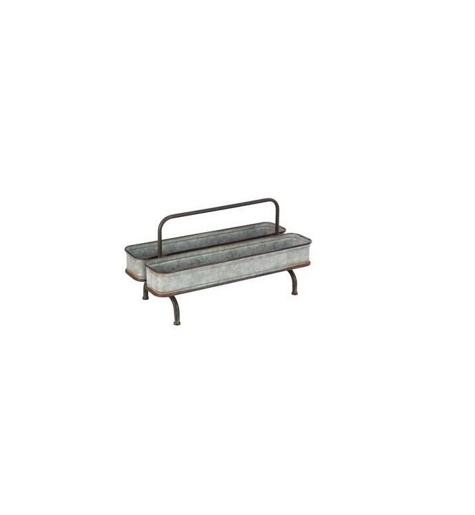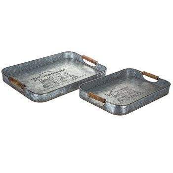 ถาดชุบสังกะสีตกแต่งพร้อมที่จับสำหรับเสิร์ฟขนมกาแฟชาหรือเป็นชิ้นเน้นโต๊ะในบ้านแบบชนบท