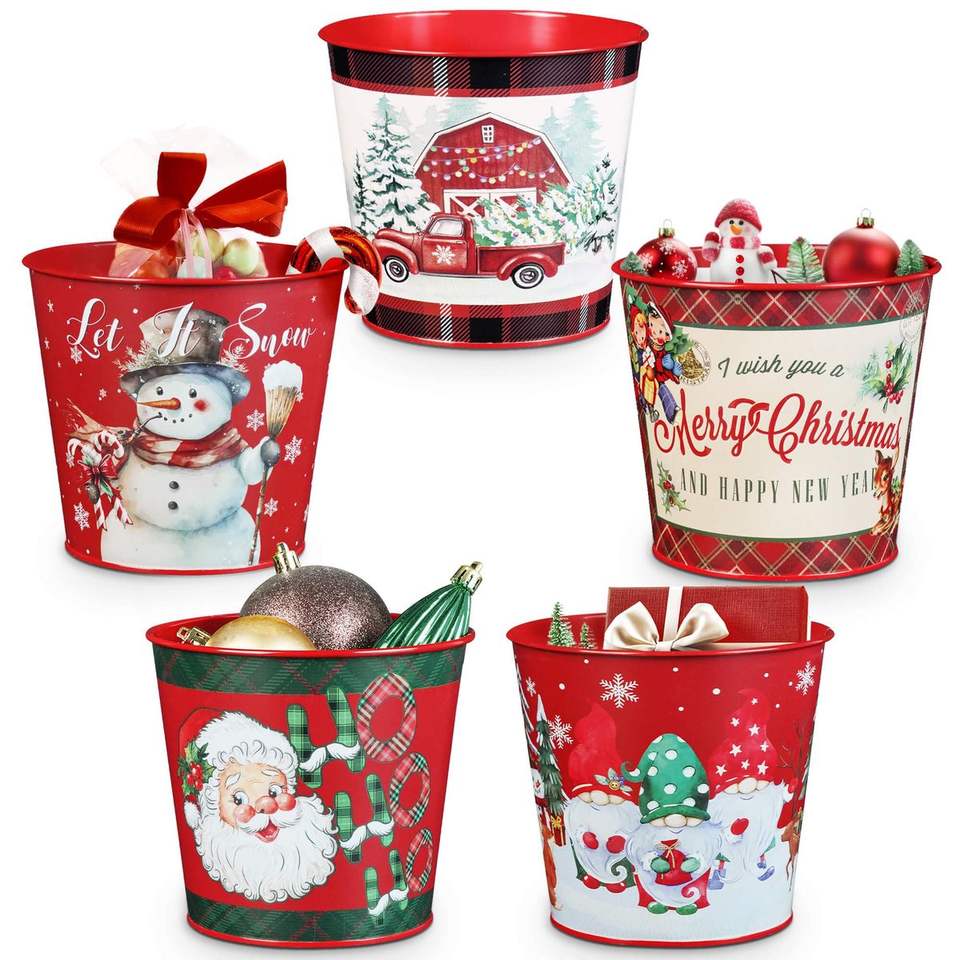 ถังโลหะตกแต่งคริสต์มาสที่สมบูรณ์แบบสำหรับวันหยุดแนวคิดการจัดดอกไม้สำหรับร้านอาหารบ้านและการตกแต่งกิจกรรม