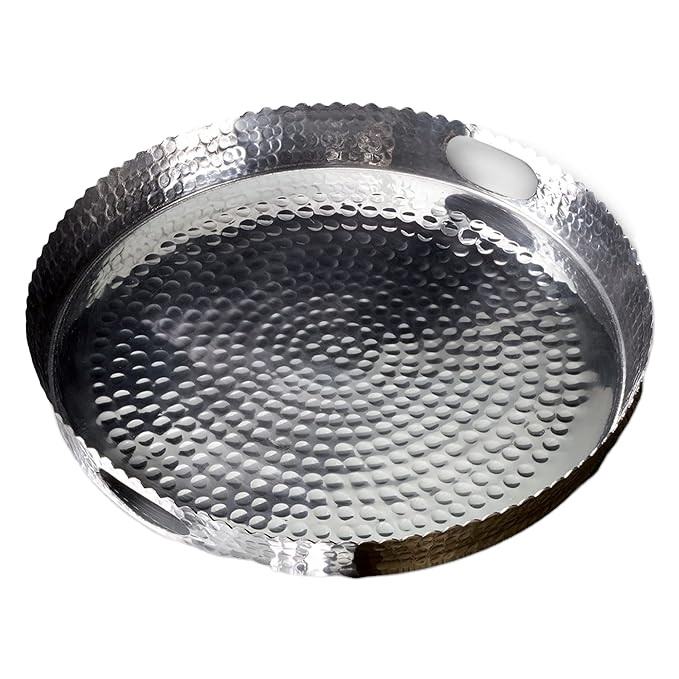 ถาดโลหะตกแต่งคุณภาพพรีเมียม ถาดทำมือทรงกลม ดีไซน์ทันสมัย ผิวแบบตอกลาย สำหรับตกแต่ง