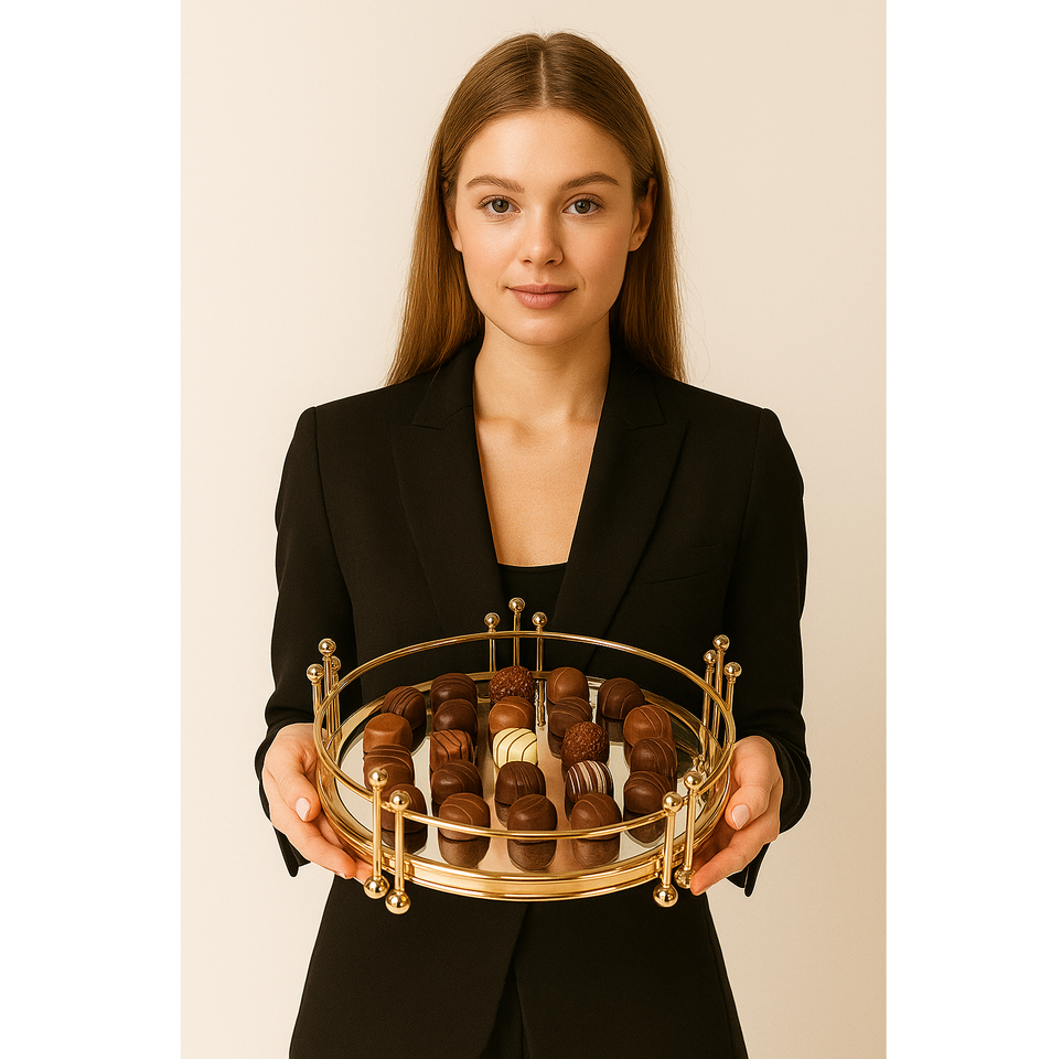 ถาดโลหะสีทองตกแต่งสำหรับงานรอมฎอนและงานแต่งงาน ทาสีด้วยมือด้วยเคลือบอีนาเมล เพื่อการเสิร์ฟและการจัดแต่งที่หรูหรา