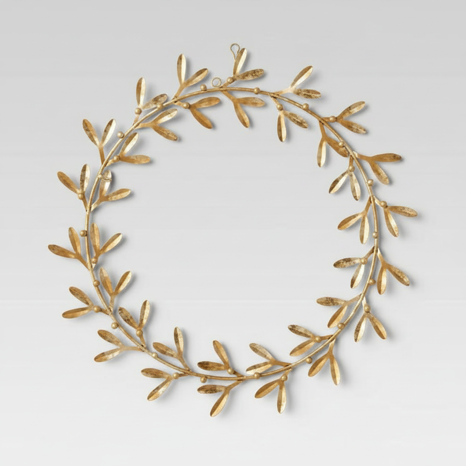 พวงมาลาโลหะประดับตกแต่งลายดอกใบไม้และดอกไม้ที่มีรายละเอียดเหมาะสำหรับการตกแต่งผนังตามเทศกาลหรือตามฤดูกาล