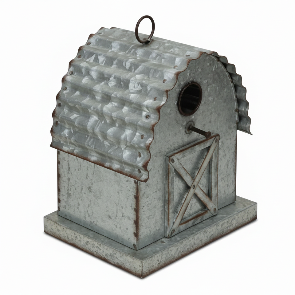 บ้านนกโลหะตกแต่งกลางแจ้งสำหรับนกในสวนขนาดเล็กพร้อมดีไซน์สไตล์บ้านไร่แนววินเทจแบบเรียบง่าย