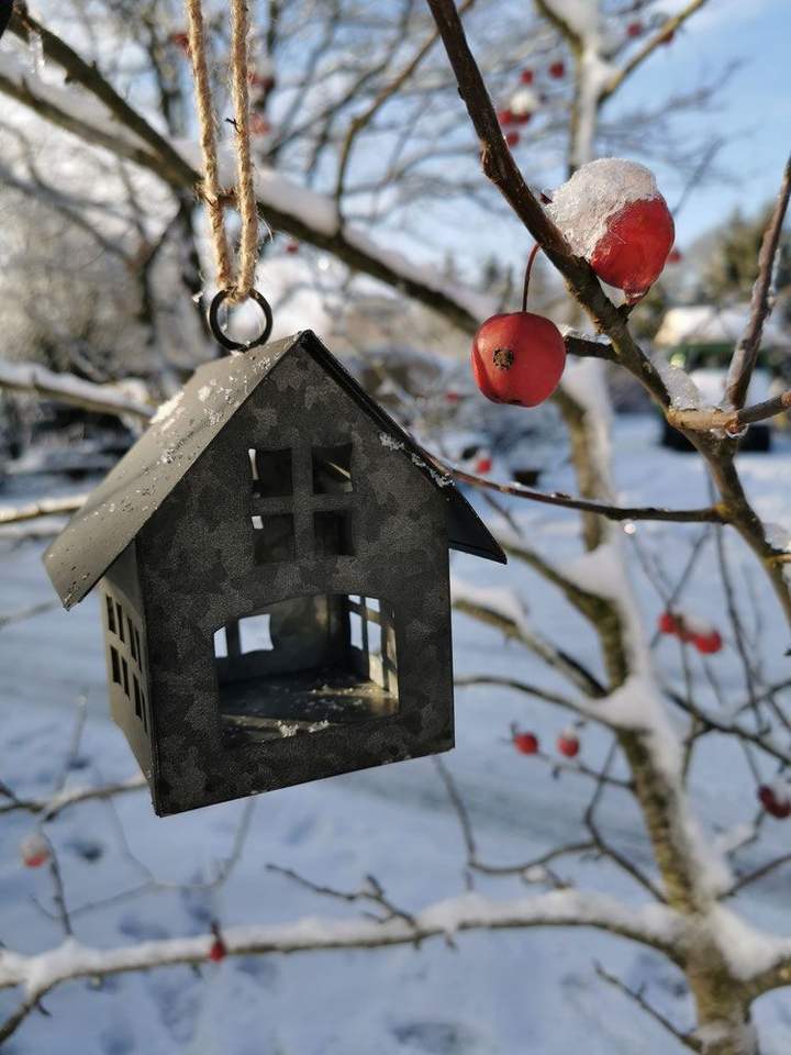 บ้านนกโลหะตกแต่งกลางแจ้งสำหรับนกในสวนขนาดเล็กพร้อมดีไซน์สไตล์บ้านไร่แนววินเทจแบบเรียบง่าย