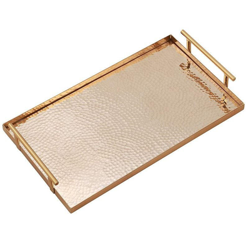 ถาดเสิร์ฟทรงสี่เหลี่ยมผืนผ้าตกแต่งสีโรสโกลด์ ถาดเสิร์ฟลายตอกแบบตกแต่งสำหรับการตกแต่ง
