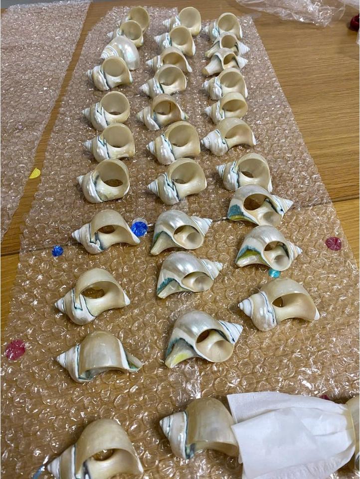 ห่วงใส่ผ้าเช็ดปากประดับเปลือกหอยสำหรับอุตสาหกรรมจัดเลี้ยงและโต๊ะในร้านอาหาร