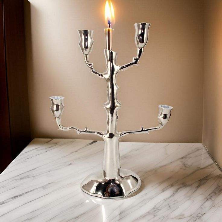 ตกแต่งเชิงเทียนโลหะสีเงินสูงสำหรับตกแต่งงานแต่งงานที่หรูหราด้วยการออกแบบแขนเทียนสมมาตรและการสนับสนุนฐาน