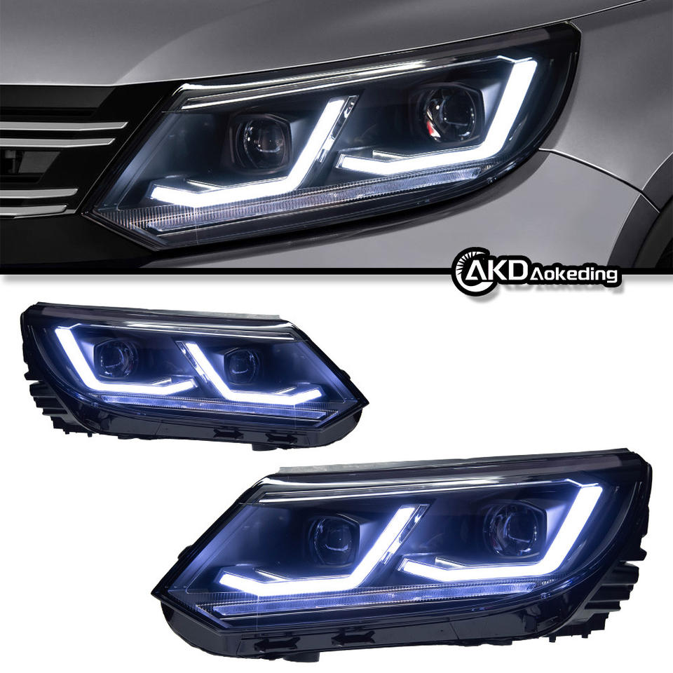 หลอดไฟ LED สำหรับวิ่งตอนกลางวันมีความสว่างสูง10-17เฉพาะสำหรับ Tiguan ชุดประกอบไฟหน้าน้ำเลนส์ความสว่างสูง