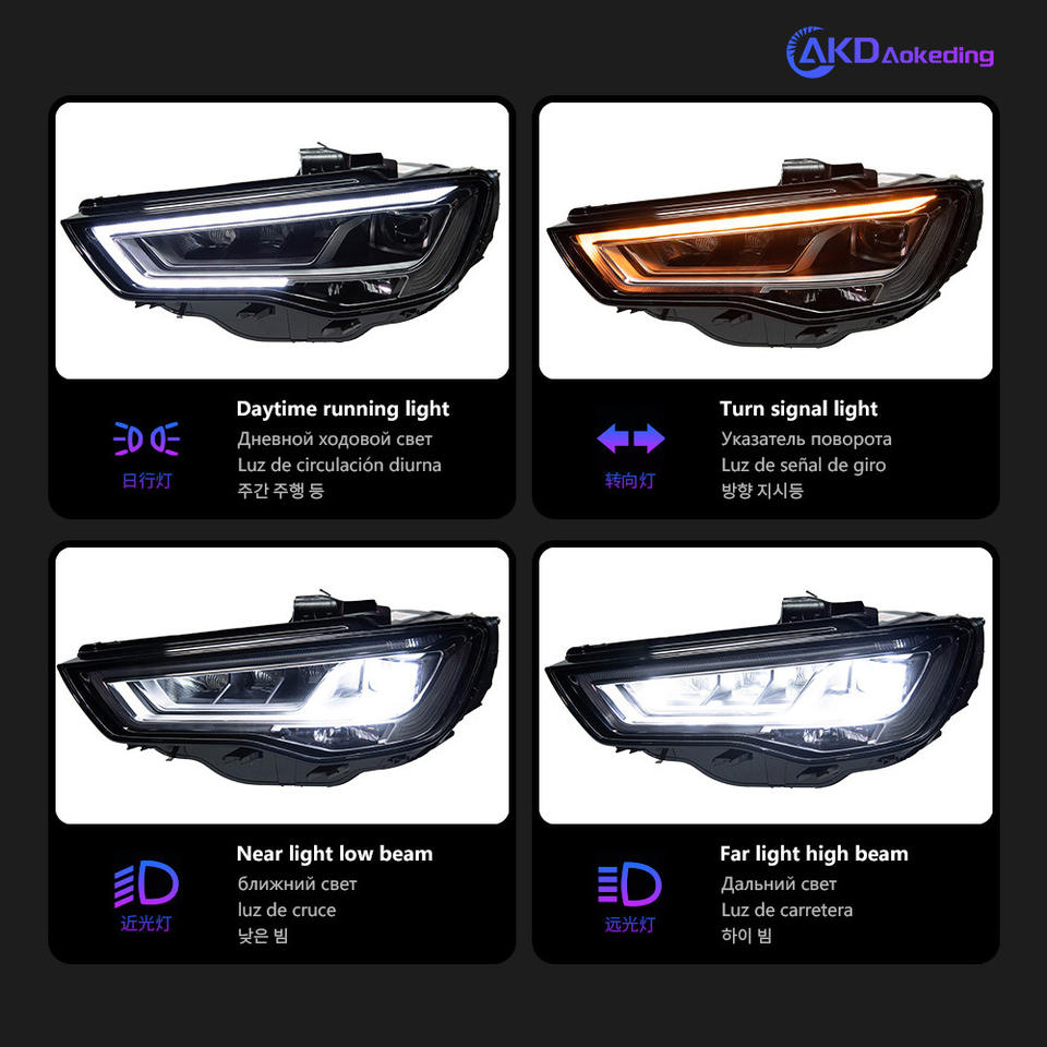ชุดไฟหน้า LED สำหรับ Audi A3 รุ่นปี 13-16 คุณภาพสูง พร้อมไฟวิ่งกลางวันแบบ S3/RS3 ไฟหน้า CG ซ้าย/ขวา