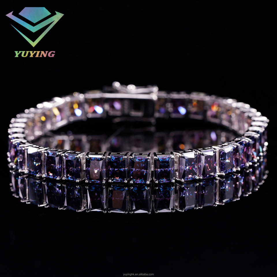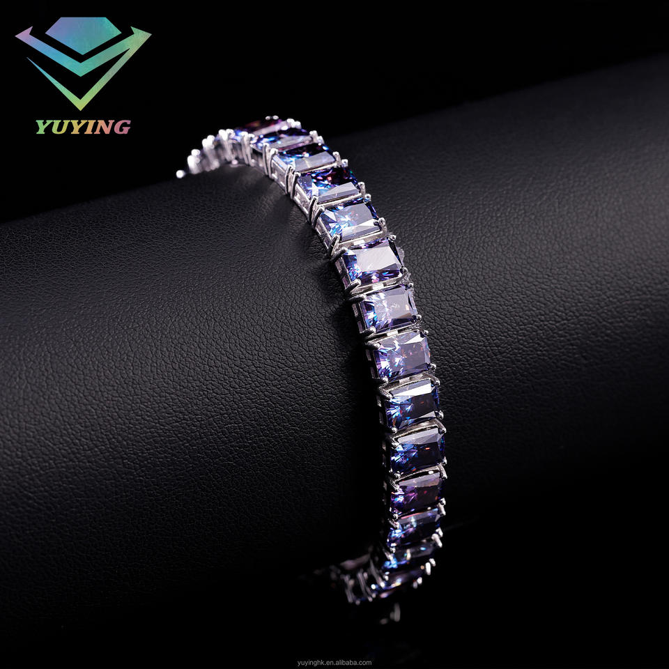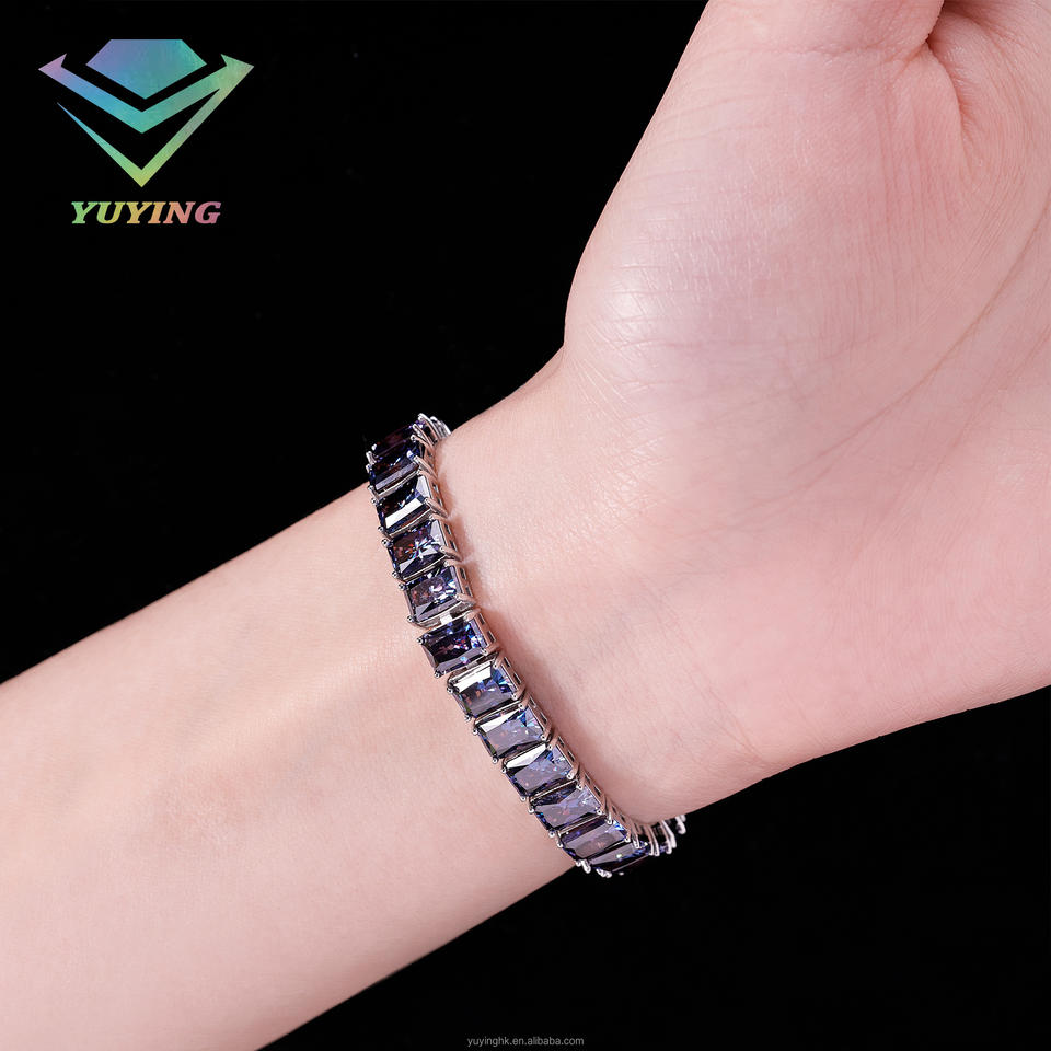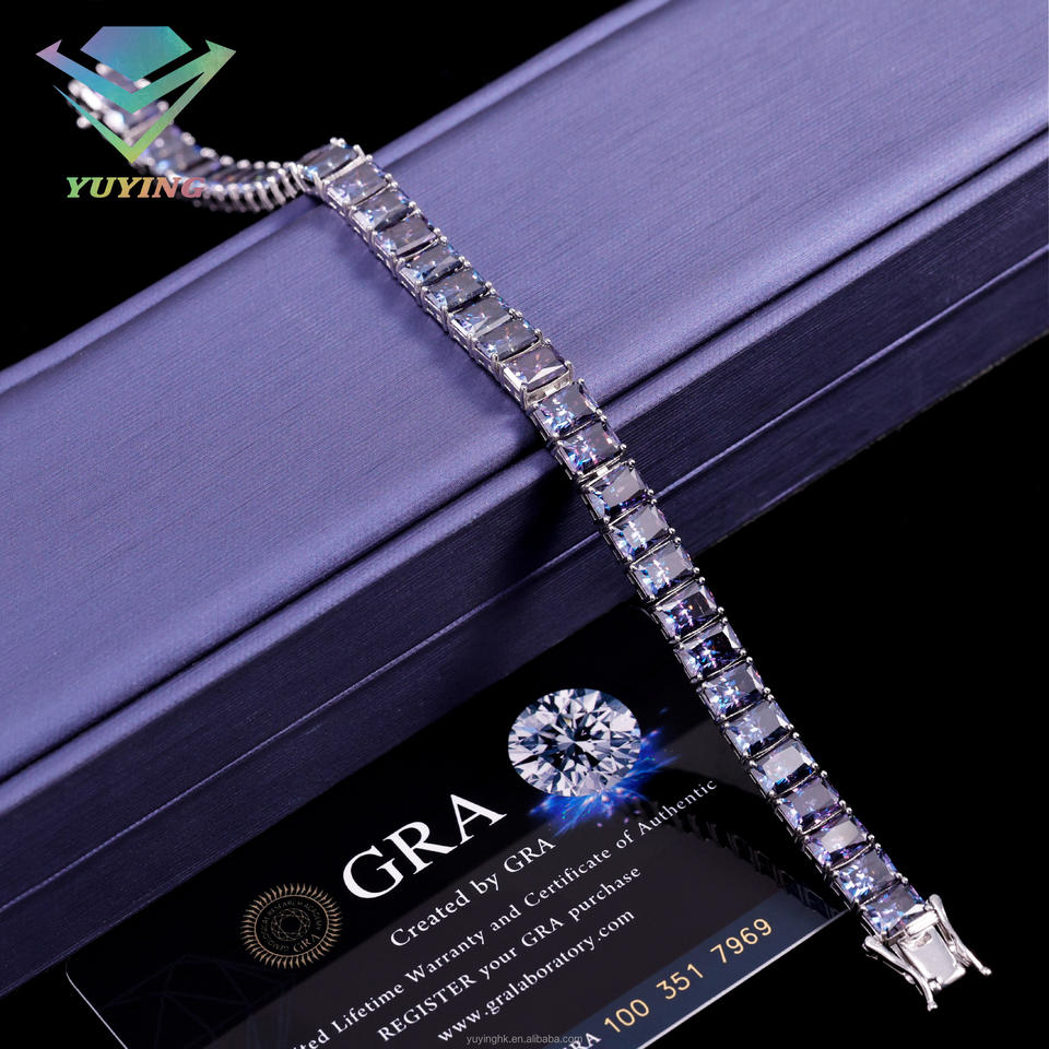 กำไลข้อมือเพชรสีน้ำเงินเข้มทรงมรกต ประดับมอสซาไนต์ เงินแท้ 925 สำหรับเครื่องประดับสุดหรู