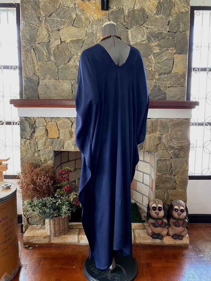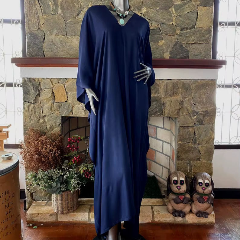 ชุดเดรสคาฟทันผ้าเรยอนย้อมสีน้ำเงินเข้มทรงหลวมสไตล์โบโฮไซส์พลัส