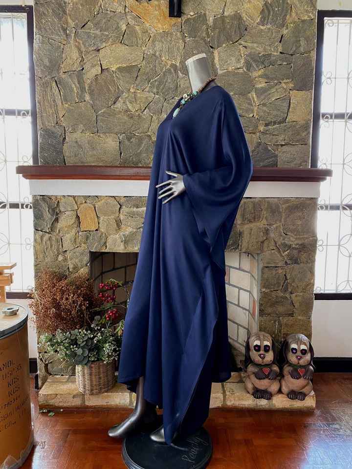 ชุดเดรสคาฟทันผ้าเรยอนย้อมสีน้ำเงินเข้มทรงโบโฮไซส์ใหญ่ สวมใส่สบายพลิ้วไหวสำหรับผู้หญิง