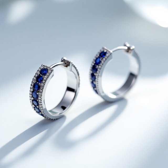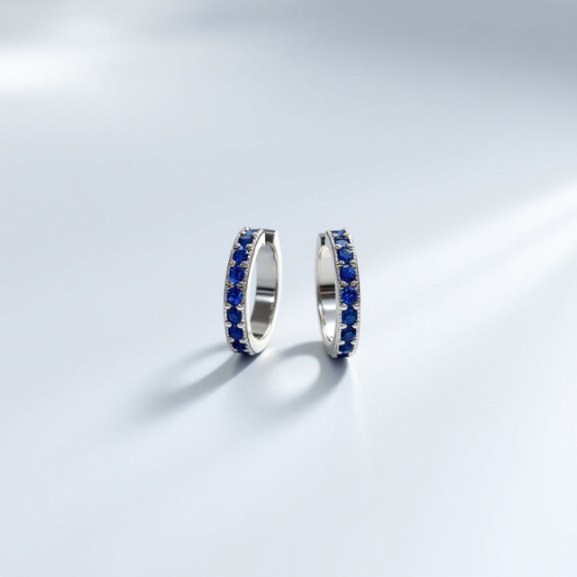 ต่างหูทรงห่วงพลอยไพลินสีน้ำเงินเข้ม ขนาดเล็ก ชุบแพลตตินัมและโรสโกลด์ ประดับพลอยประจำเดือนกันยายน คุณภาพสูง หรูหรา สำหรับผู้หญิง พร้อมใบรับรอง GIA