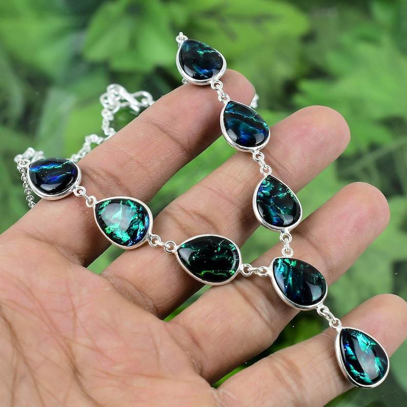 Keyword:Blue Triplet Fire Opal Necklace Handmade Sterling Silver Pendant