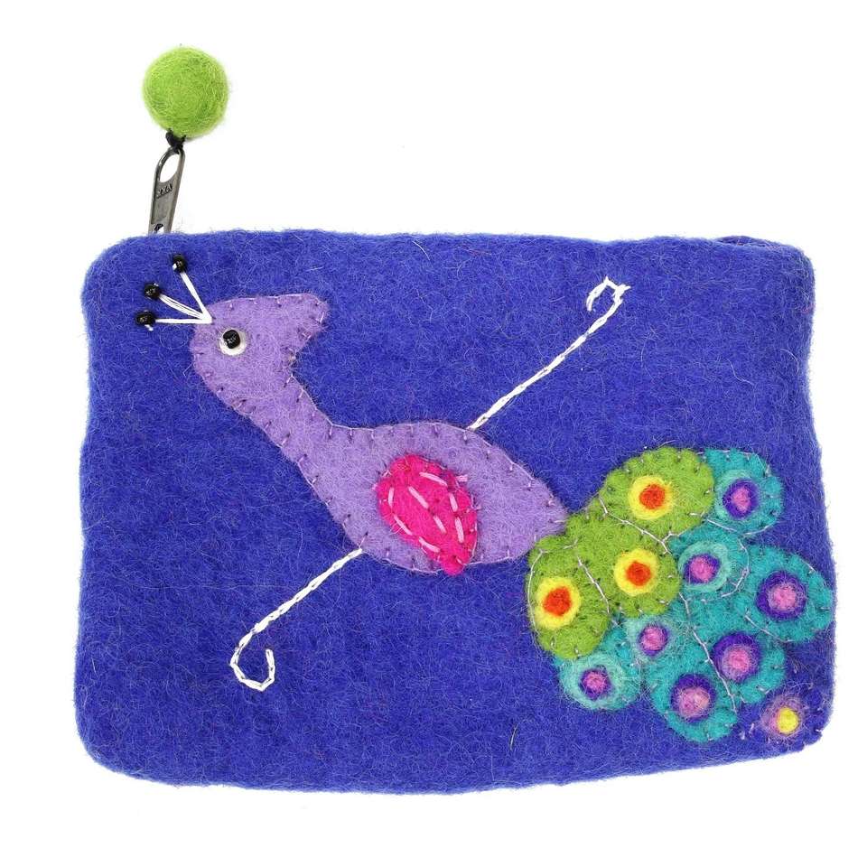 กระเป๋าใส่เหรียญสักหลาดสีน้ำเงินเข้มใช้ได้ทั้งชายและหญิงมีลายการ์ตูนกระเป๋าสตางค์สำหรับเก็บเงิน